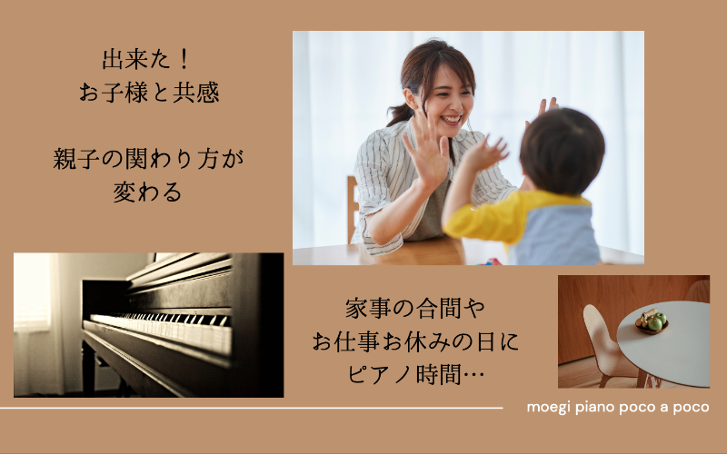 練習する姿を見て、お子様も頑張る気持ちになり、お一人でレッスンを受けられるよりも、楽しく長く続けていけるのです。