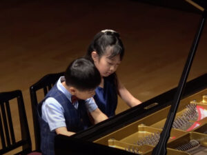 2025年ピティナコンペティション連弾初級A部門 全国大会銀賞を受賞 PTNAコンペティションは国内最大規模のピアノ コンクール。こんな大舞台で、こんなに娘の大きな成長を見ることが出来て、幸せです。 娘は7歳ではじめてのコンペティション。楽譜がなかなか読めず成長も遅い…ピアノ の練習も短時間ですぐに飽きるし、集中できない。 スタートはここからでした。 色々な関係者の方からお聞きしていたのは、みんなコンペ挑戦は幼児の頃から始まっている、と…スタートから出遅れているので覚悟はしていました。 最初は課題が山積みでした。まだまだ弱い指先の強化、拍の取り方、一つ一つの曲の背景を理解してからの、曲構成、表現へ…と何度も何度も壁にぶつかりました。その度に涙を流すし、厳しいと分かっていながらも、難しい課題をクリアさせるために、何度も何度も基礎練習に戻りました。 娘は最後まで本当によく頑張りました!この粘り強さは、ピアノ だけではなく、他のことでもきっと何か役に立つ時があるはずです。 私は今回、娘のコンペ挑戦を通して、分かったことがあります。 最初は本当に自信もなくピアノ 続けられるのか不安だった娘でも、目標を持ったことによってこんなに頑張ることが出来たのです。 やる気さえあれば、きっとどんな子でも取り組んでいけると思いました。 頑張る力、続ける力は、挑戦する子供本人だけでなく、支えていく保護者の方にも同様に求められ、最後までやり遂げた時には、きっと見える世界が変わると思います。